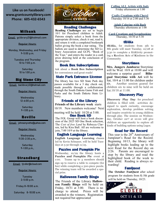 Grant County Public Library Milbank Staff